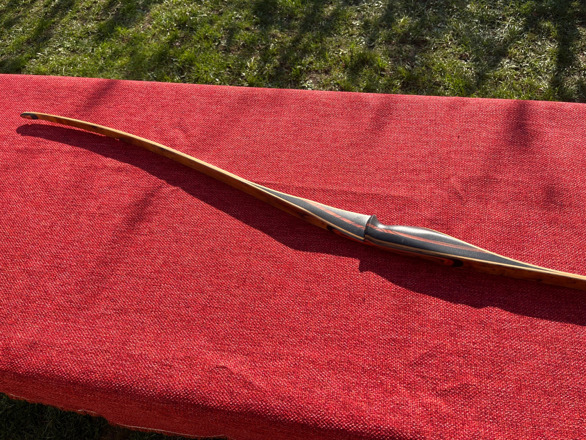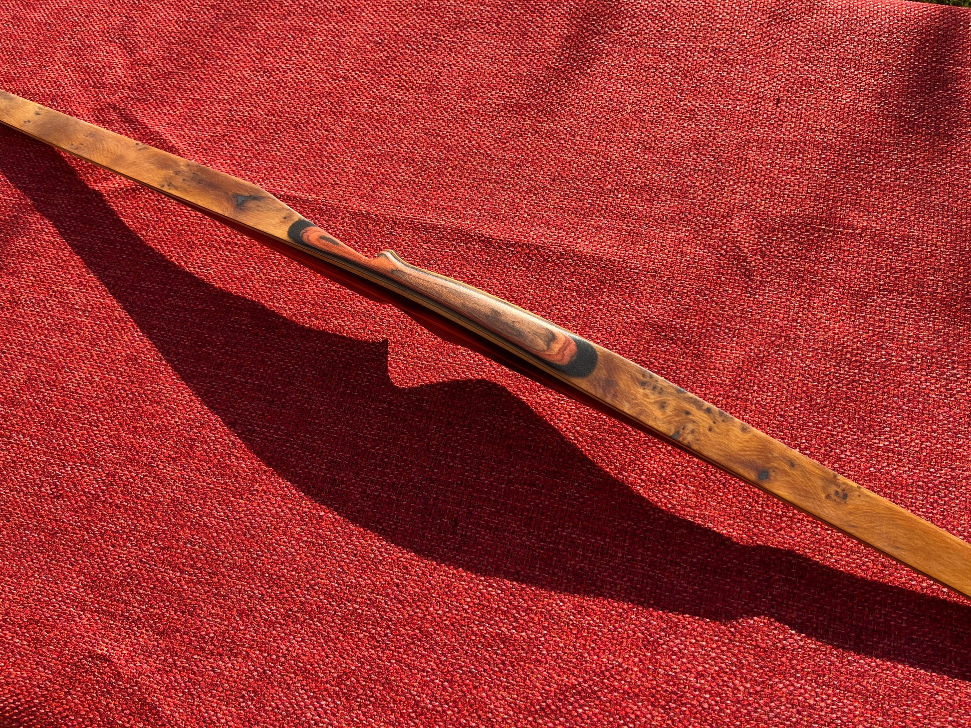 Griffstück aus Micarta und Cocobolo Zierstreifen, Wurfarme mit Carboneinlage, Trapez-Schliff und Furnier aus wunderschöner, gepfefferter Eibe!